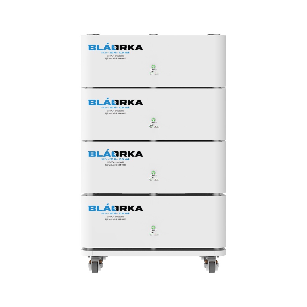LiFePO4 rafgeymar sem eru 51.2v og 200Ah eða 10kWst.